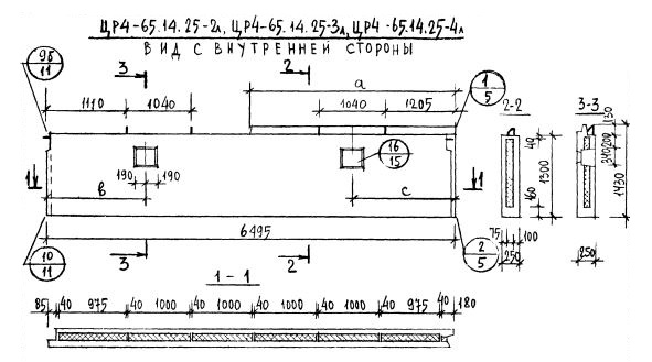 Серия 1.117-9    Панели групп ЦР1, ЦР2, ЦР4, ЦР5  толщиной 250 мм.