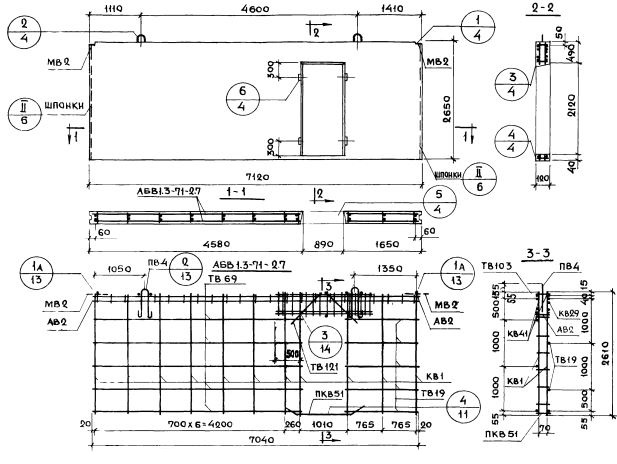 В1.3-71.27.12-2.7    Внутренние стеновые панели   (Серия 1.131-1).