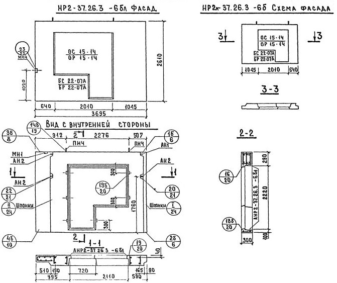 НР2-37.26.3-6бл    Наружная стеновая панель рядовая по Серии 1.132-2.